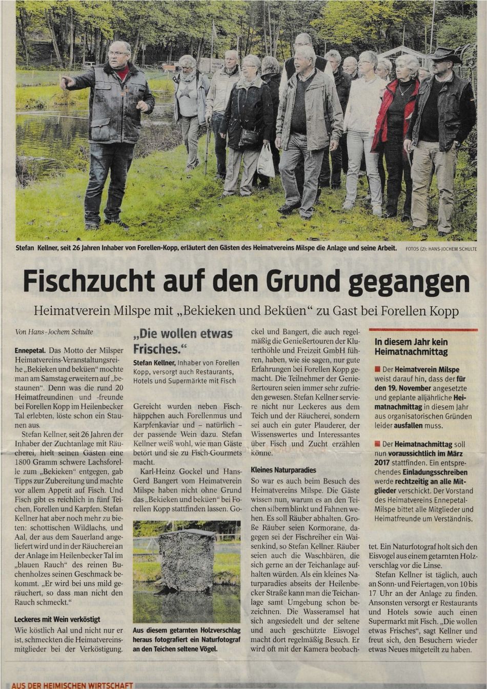 Wie die Polizei berichtet, hatten die Kriminellen den Zaun zum Grundstück der Fischzucht aufgeschnitten und die Fische aus einem der Zuchtbecken geholt. Ihre Beute brachten sie durch die Heilenbecke zu ihrem Fahrzeug, das sie auf dem Besucherparkplatz geparkt hatten.